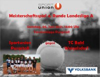 Am 5. Juni ab 13:00 findet das erste Heimspiel unserer 1er Mannschaft gegen den bisher noch ungeschlagenen TC Bakl Weigelsdorf in der Landesliga A statt.